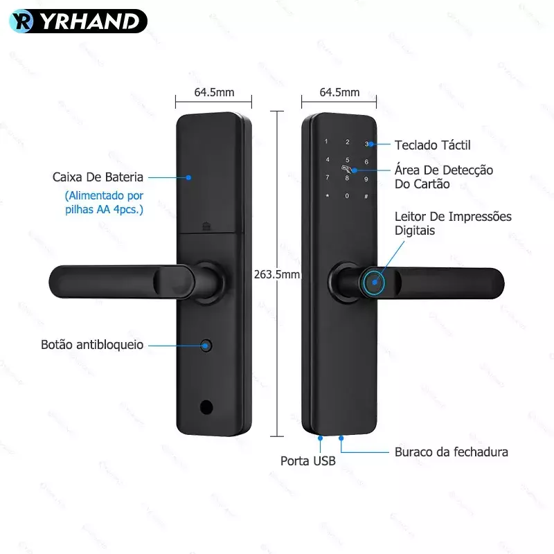 Modos de Desbloqueio: Impressão digital, senha, cartão, chave mecânica