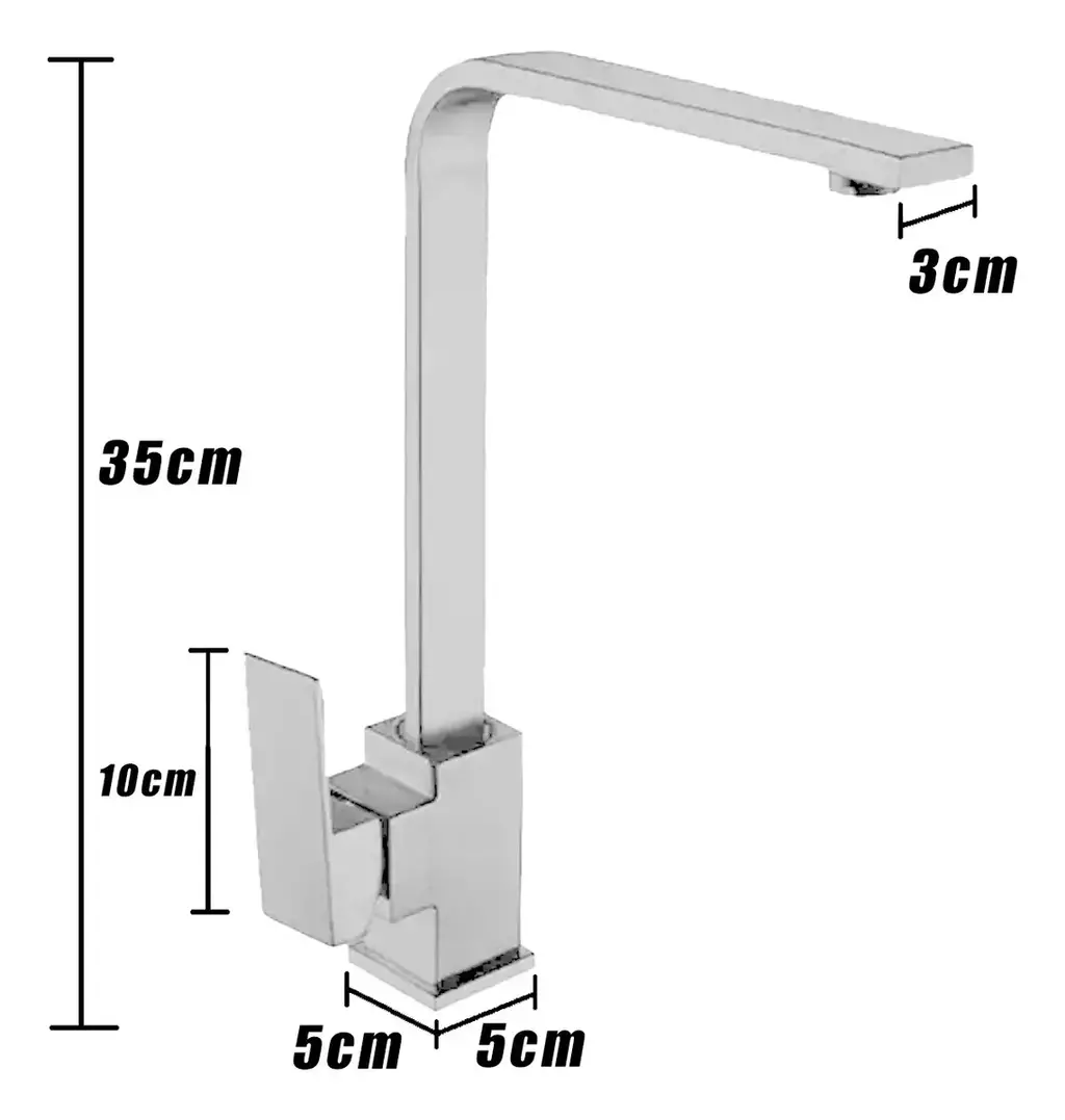 A torneira giratória oferece movimento completo, facilitando o uso em cubas duplas ou pias grandes.